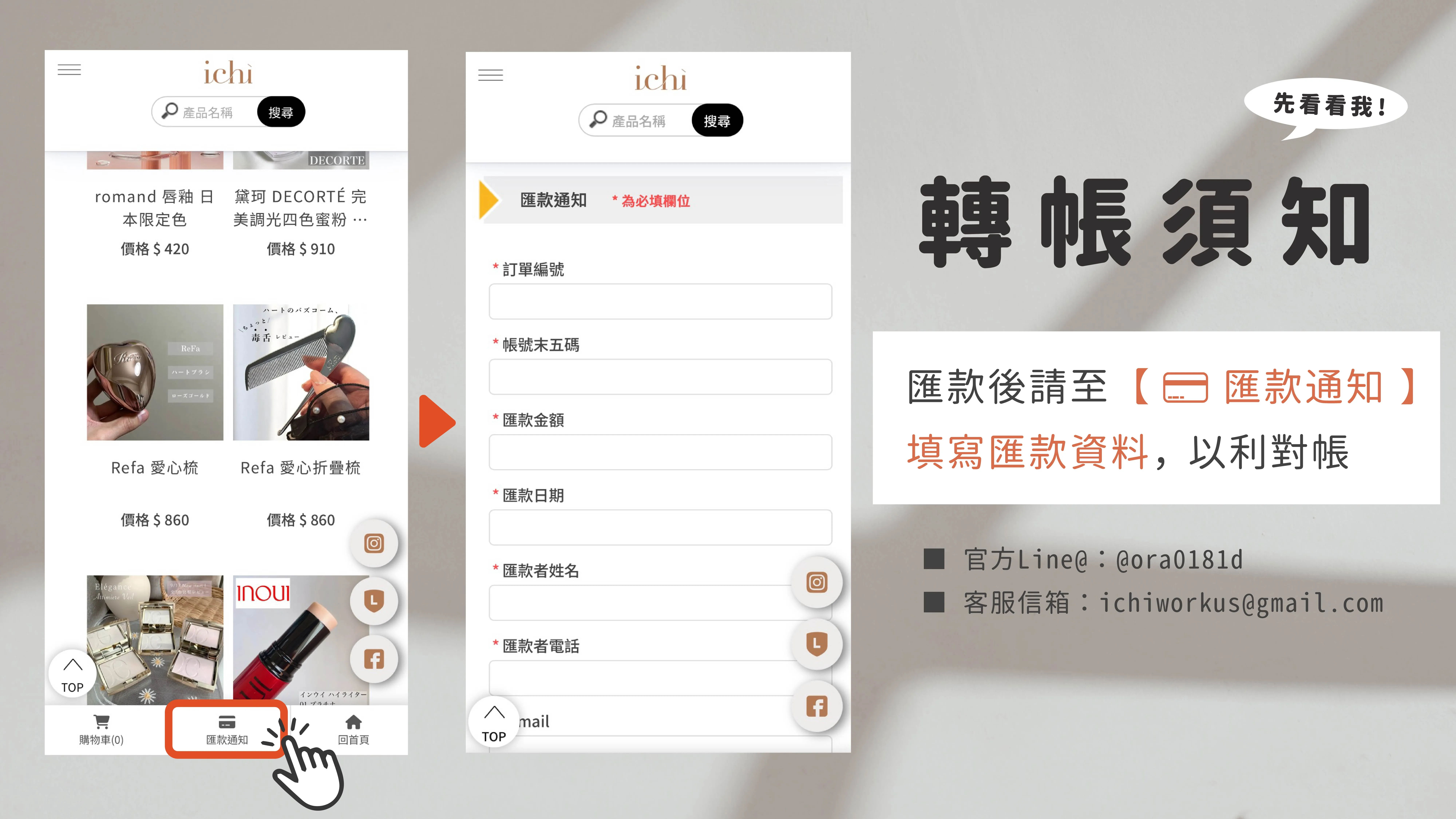 3. 匯款後請至【匯款通知】填寫匯款資料,以利對帳。